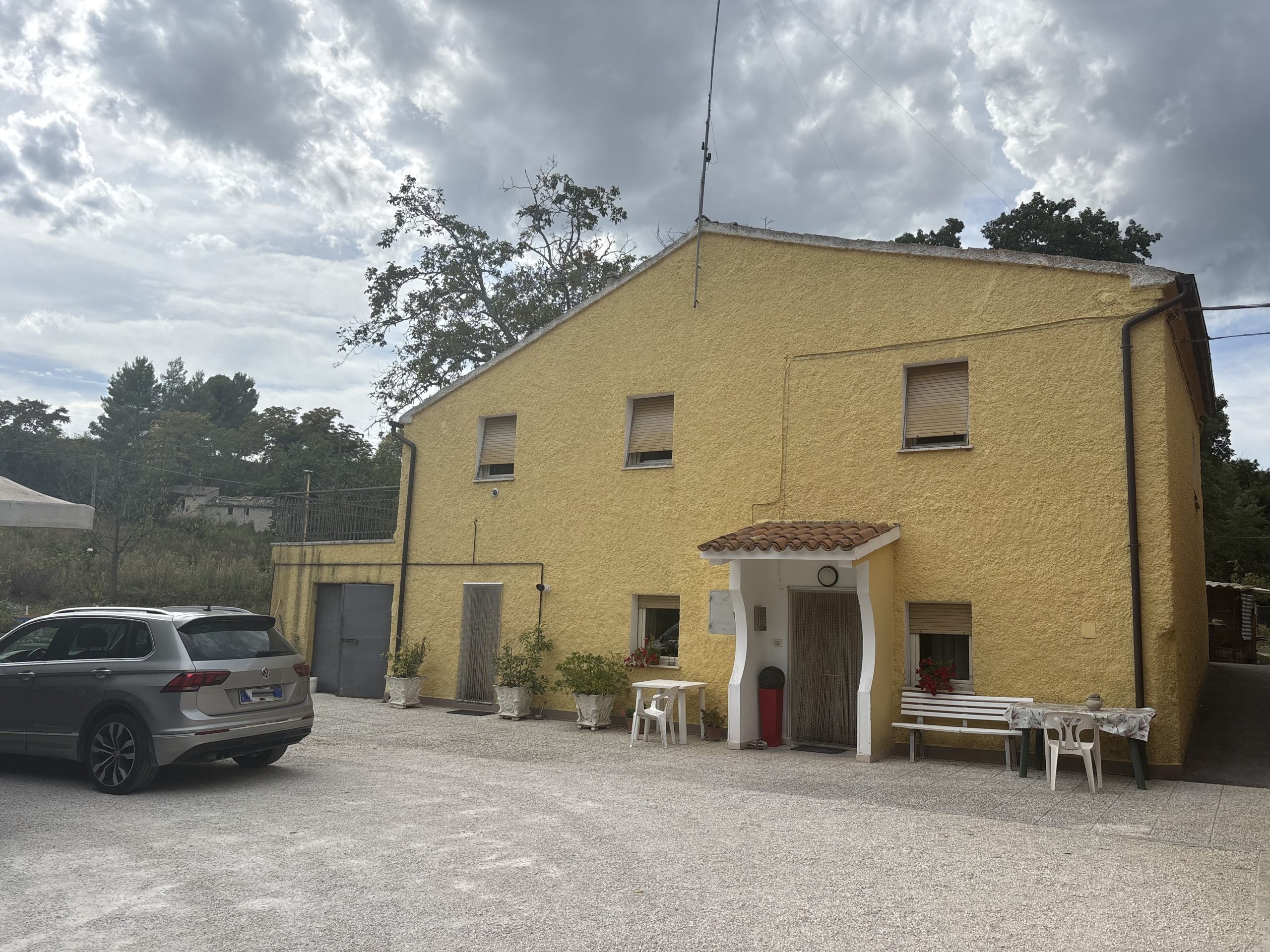 L’accesso alla Casa Nocciola è facile e agevole, grazie a una strada ben mantenuta e asfaltata di recente. Non appena si arriva, si è accolti da un ampio piazzale di proprietà, ideale per parcheggiare le automobili, e da una funzionale tettoia.